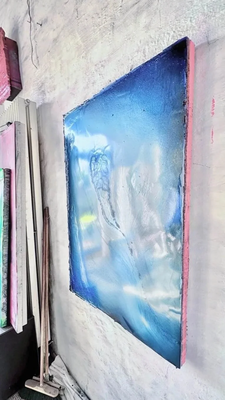 mixed media with resin and pigment on canvas