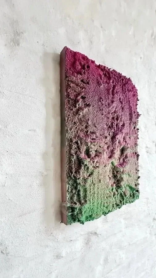 with resin beads, pigments and silicone on panel