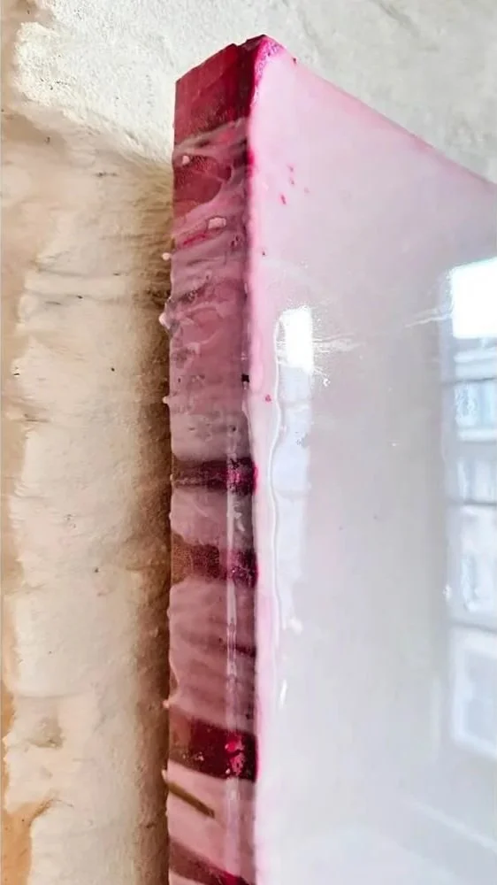 mixed media painting encased in resin