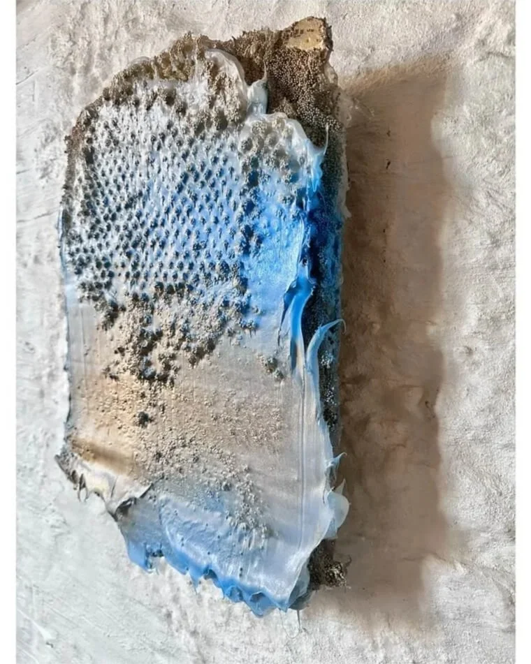 mixed media with silicone and resin on panel