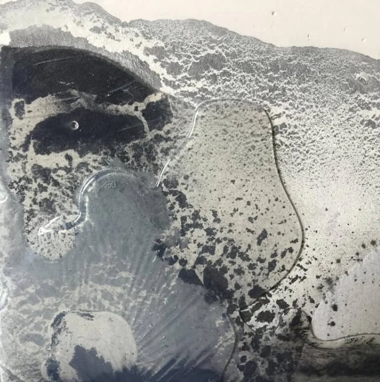 I began the piece with the fragile line where the sanded plaster meets the future glossy surface —a horizon that will be both emphasised and undone as the image evolves.